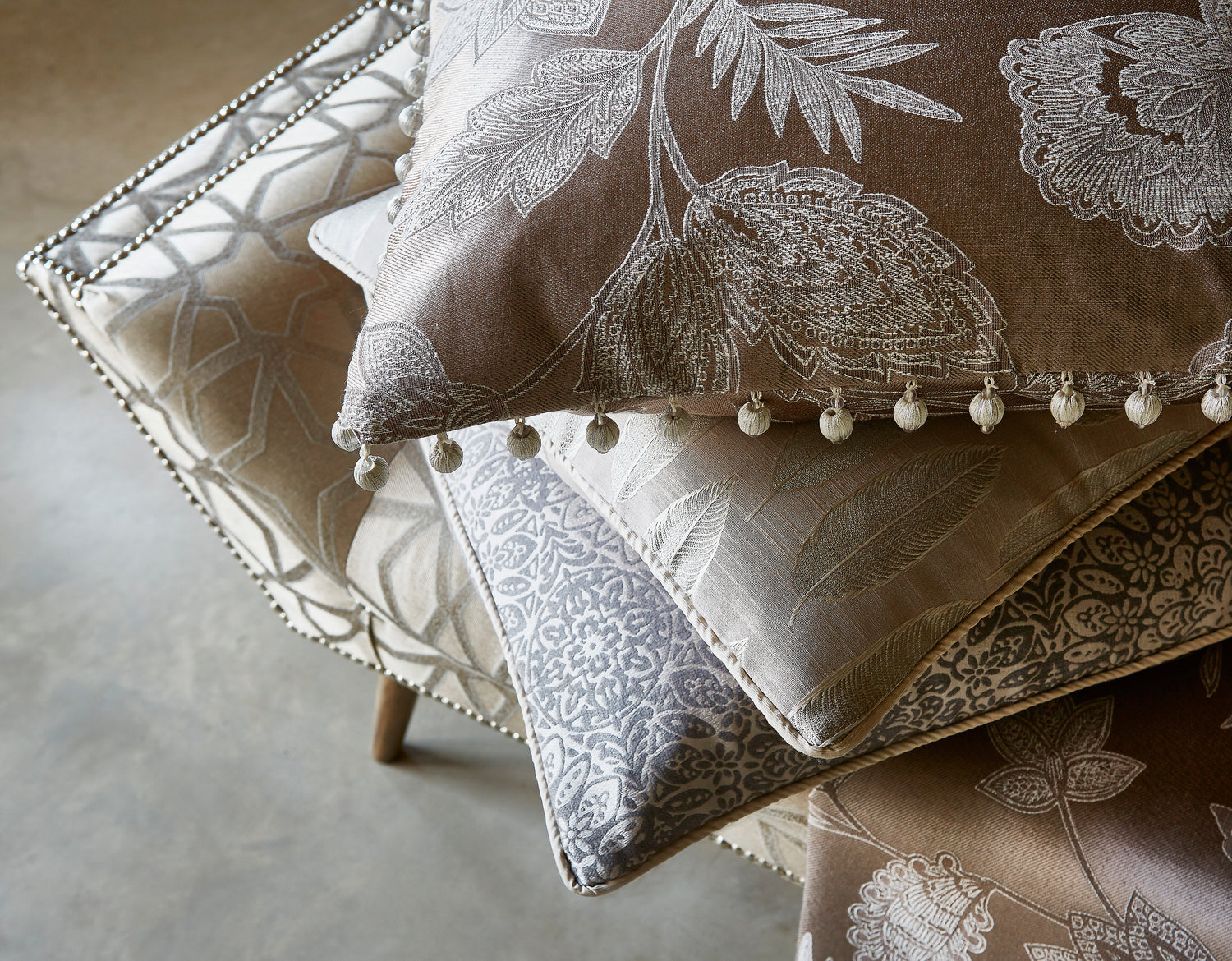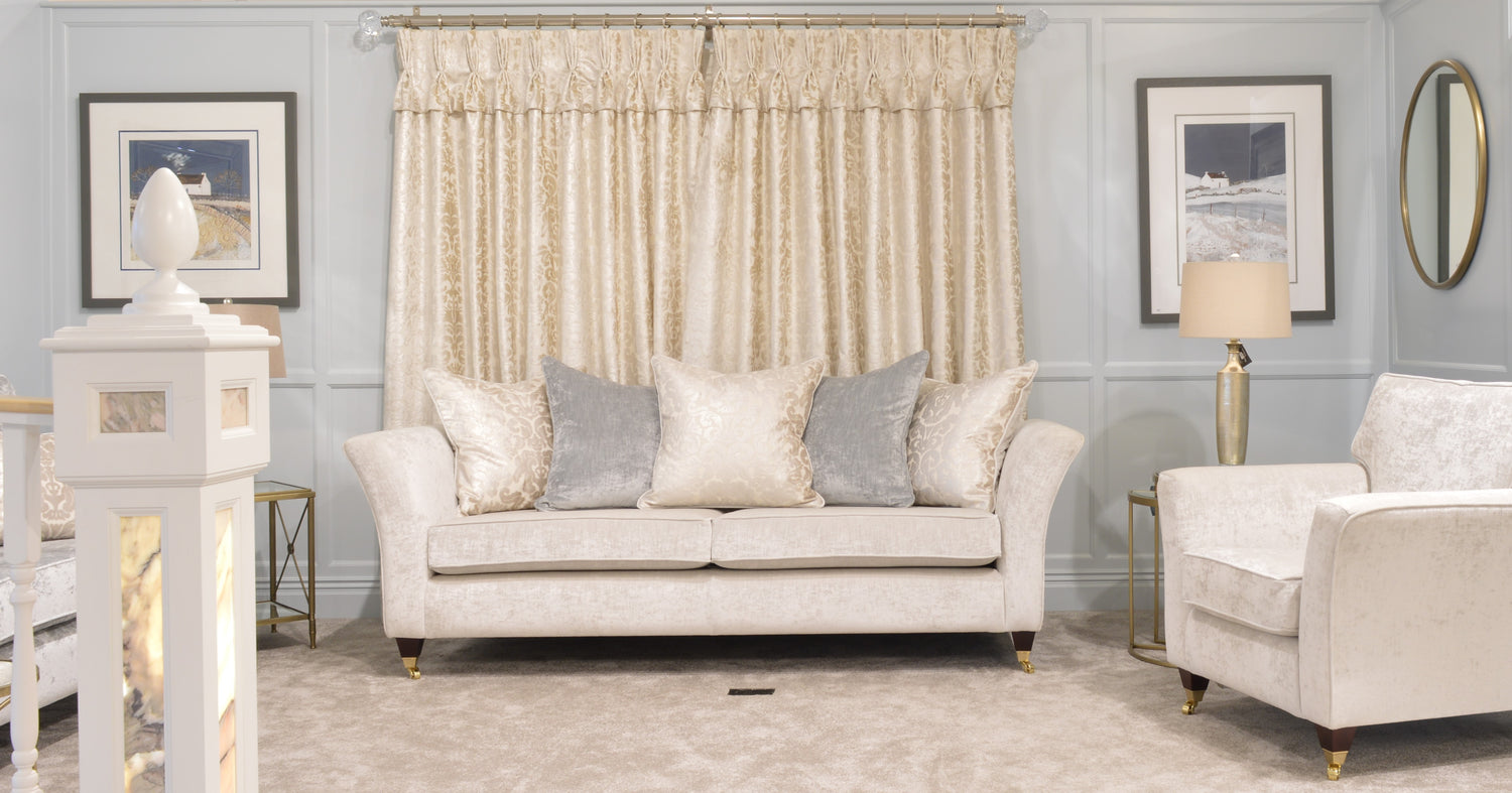In 2011 Brenda Byrne established The Cushion Case Interiors, she has gone from strength to strength designing her own curtain range and accessories.They handcraft all their stunning curtains that are in our room displays. Upstairs you will see a full product range of Brenda’s custom made curtains, curtain poles, roman blinds, scatters cushions, seat cushions, table cloths. They also do matching duvet covers in all sizes, where you could find it difficult to match super king duvets. They can supply for every room in your home. Here you can browse their finest collection of fabrics from England & European suppliers.